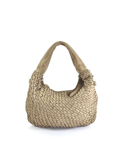 Garment-dyed woven calfskin bag,