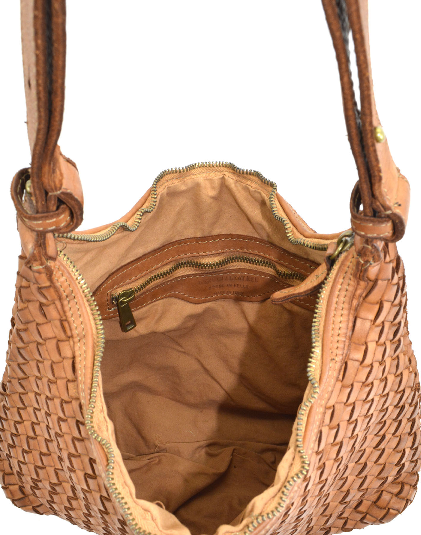 Zip opening onto large internal compartment lined in cotton fabric,