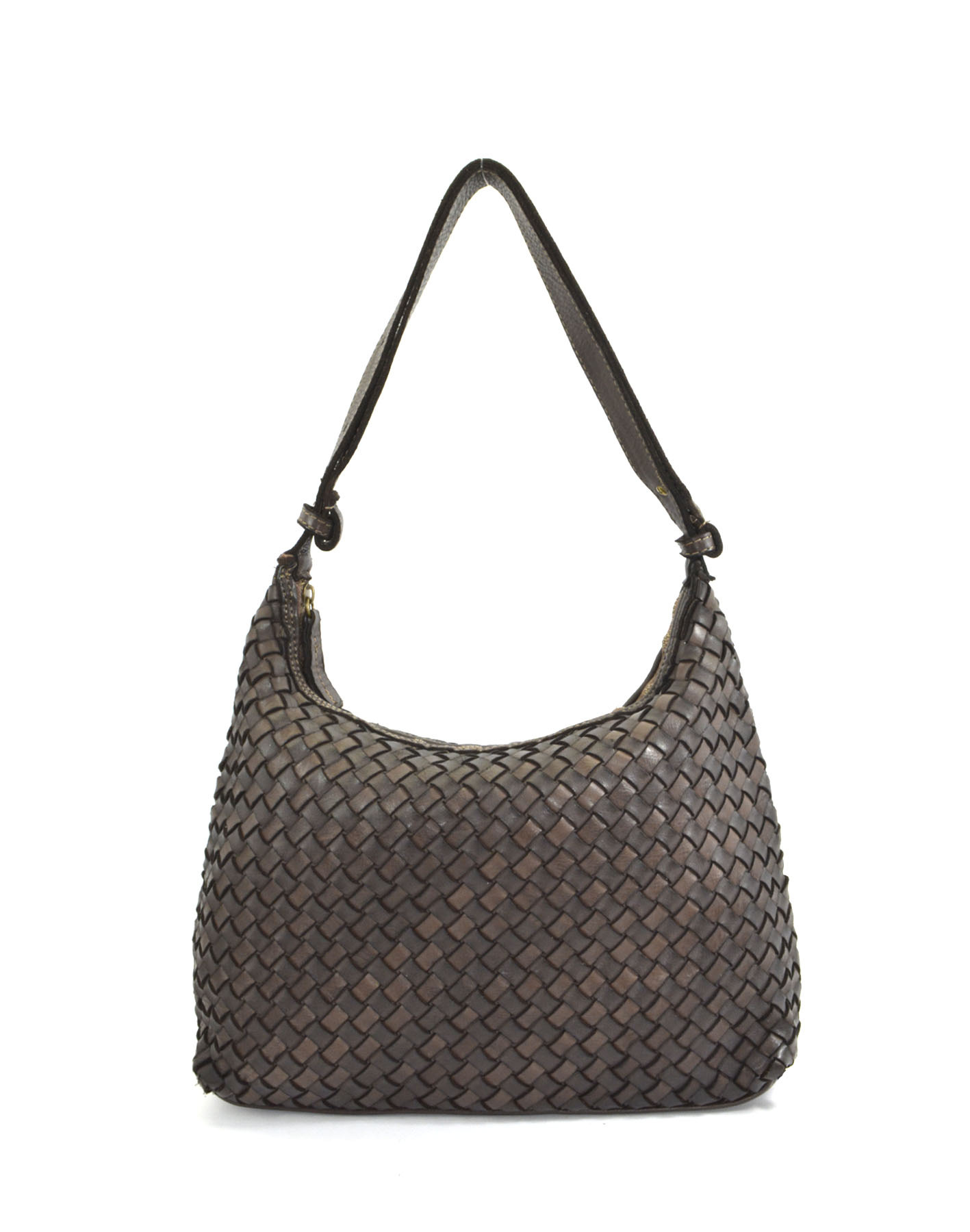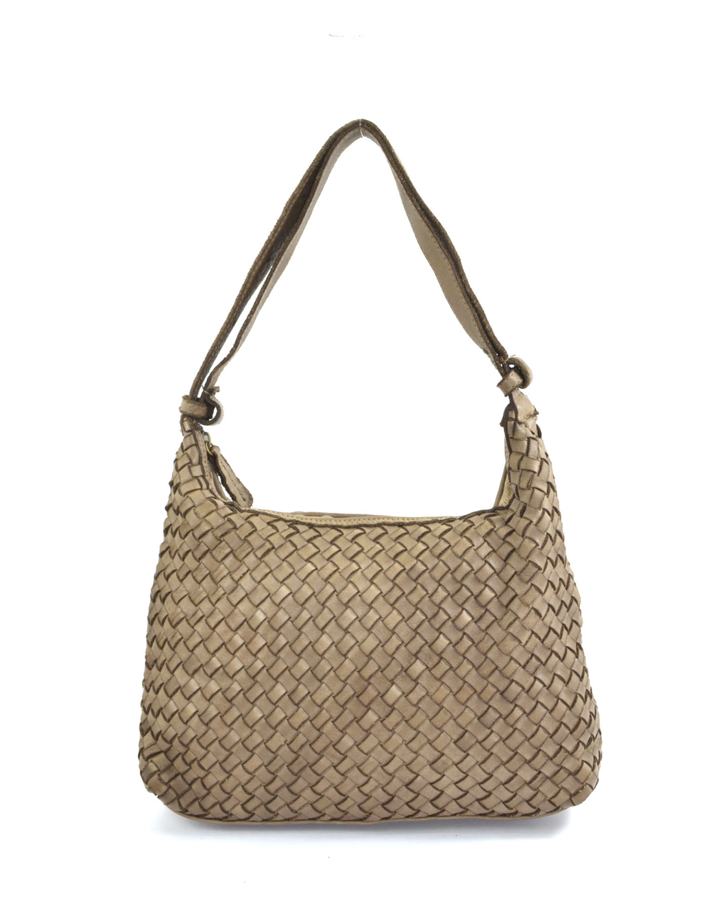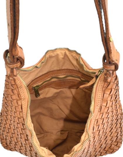 Garment-dyed woven calfskin bag,