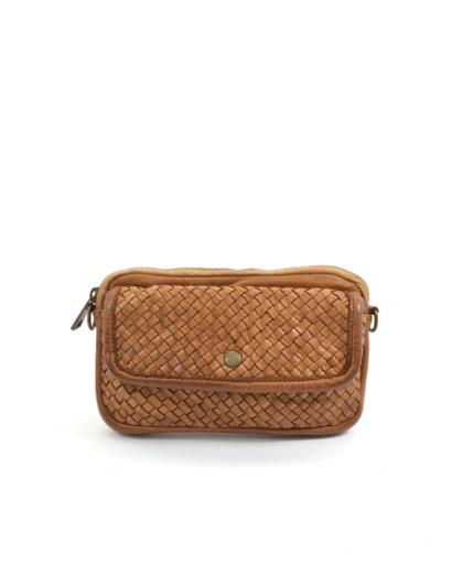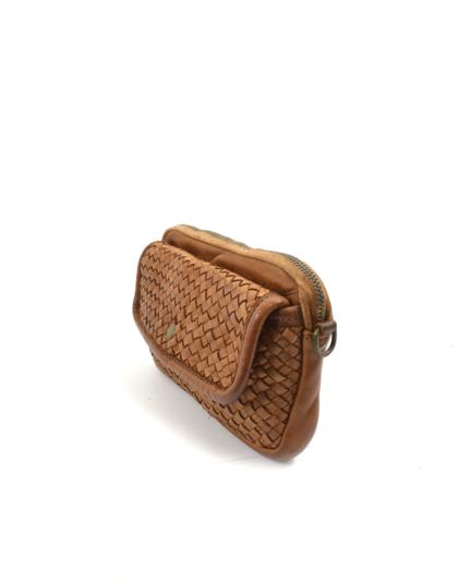 Cell phone bag in woven calfskin, dyed in the garment,