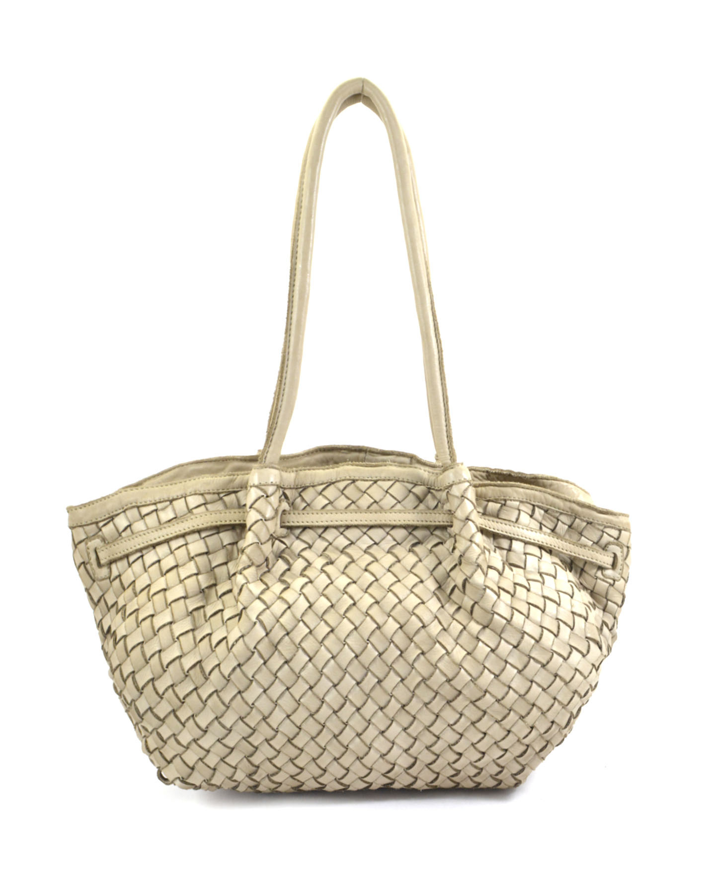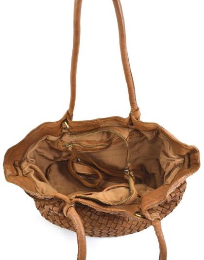 Garment-dyed woven calfskin bag,