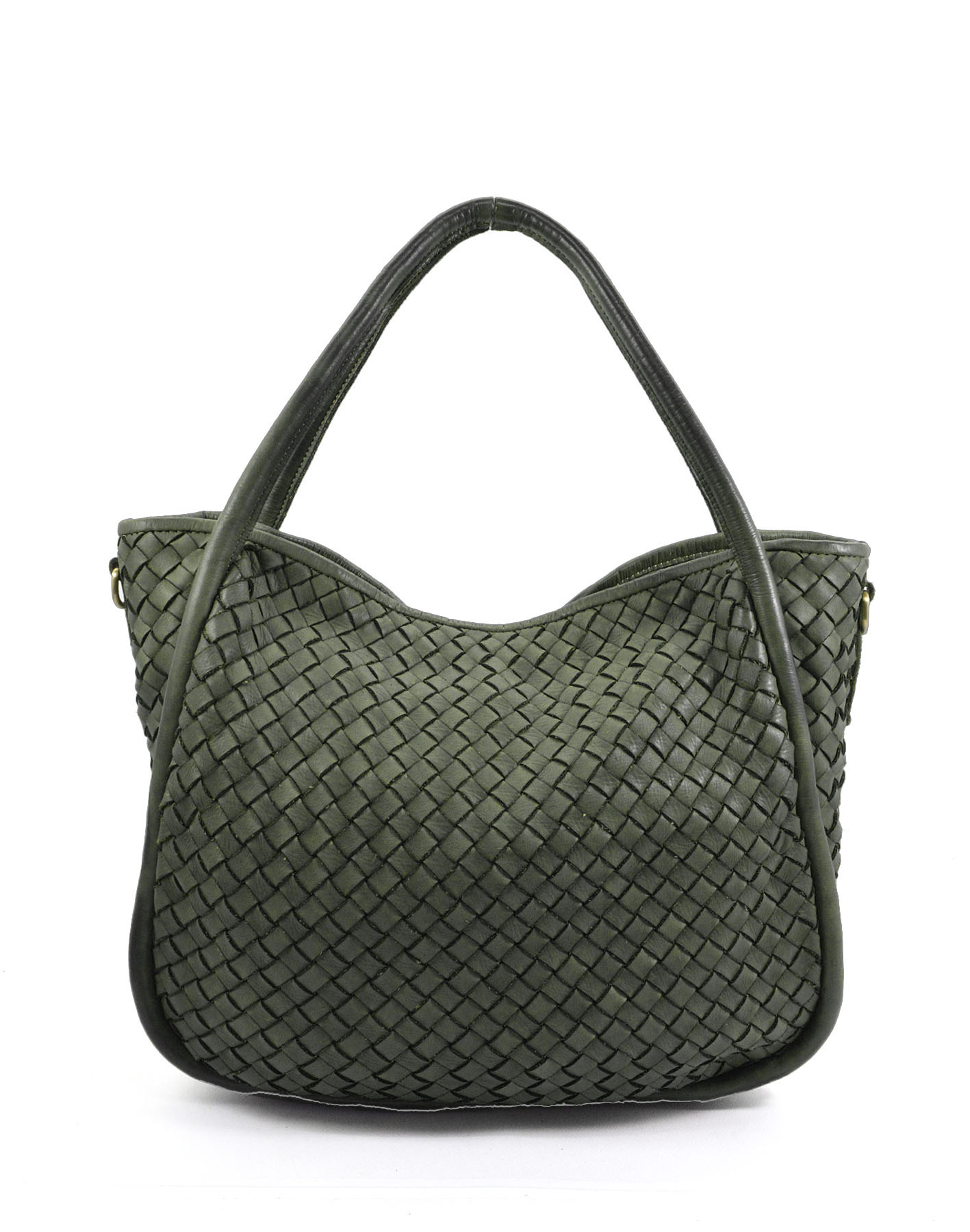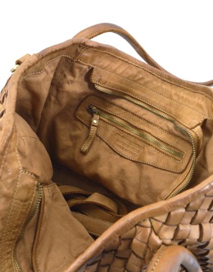 Garment-dyed woven calfskin bag,