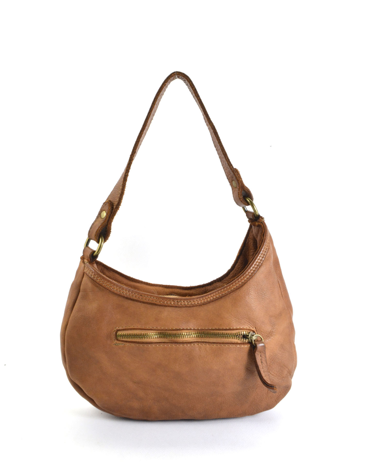 Garment-dyed woven calfskin bag, external zip pocket on the back,