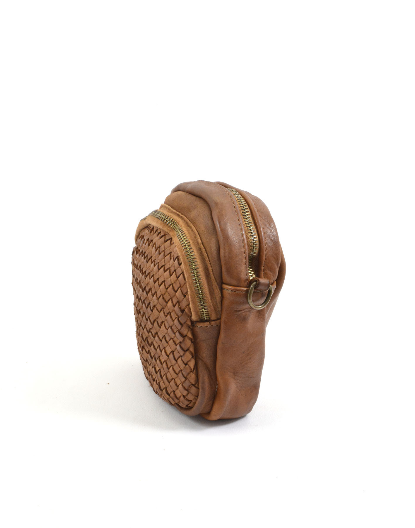 Garment-dyed woven calfskin bag,
