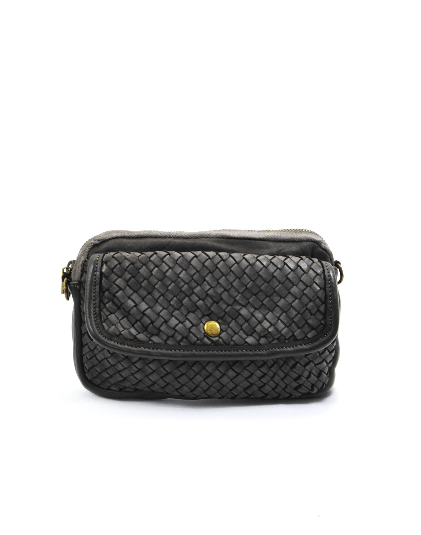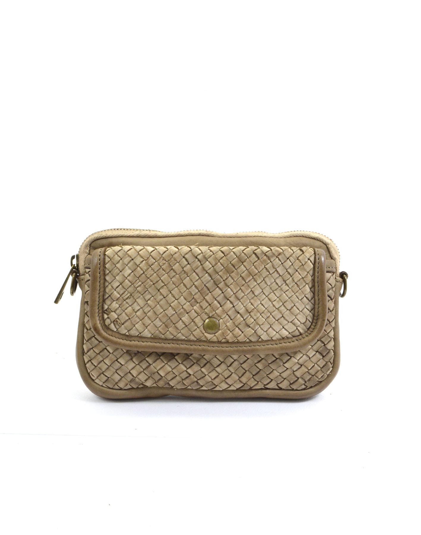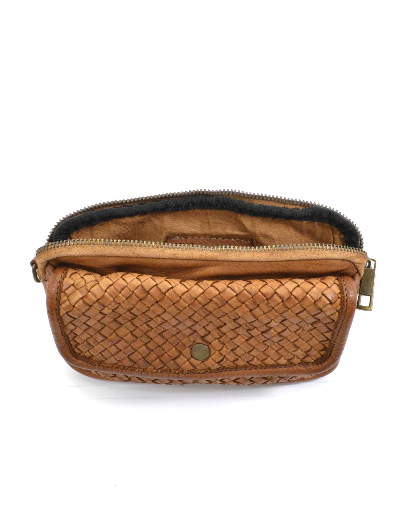 Zip opening on internal compartment lined in cotton fabric, front pocket with magnetic button,