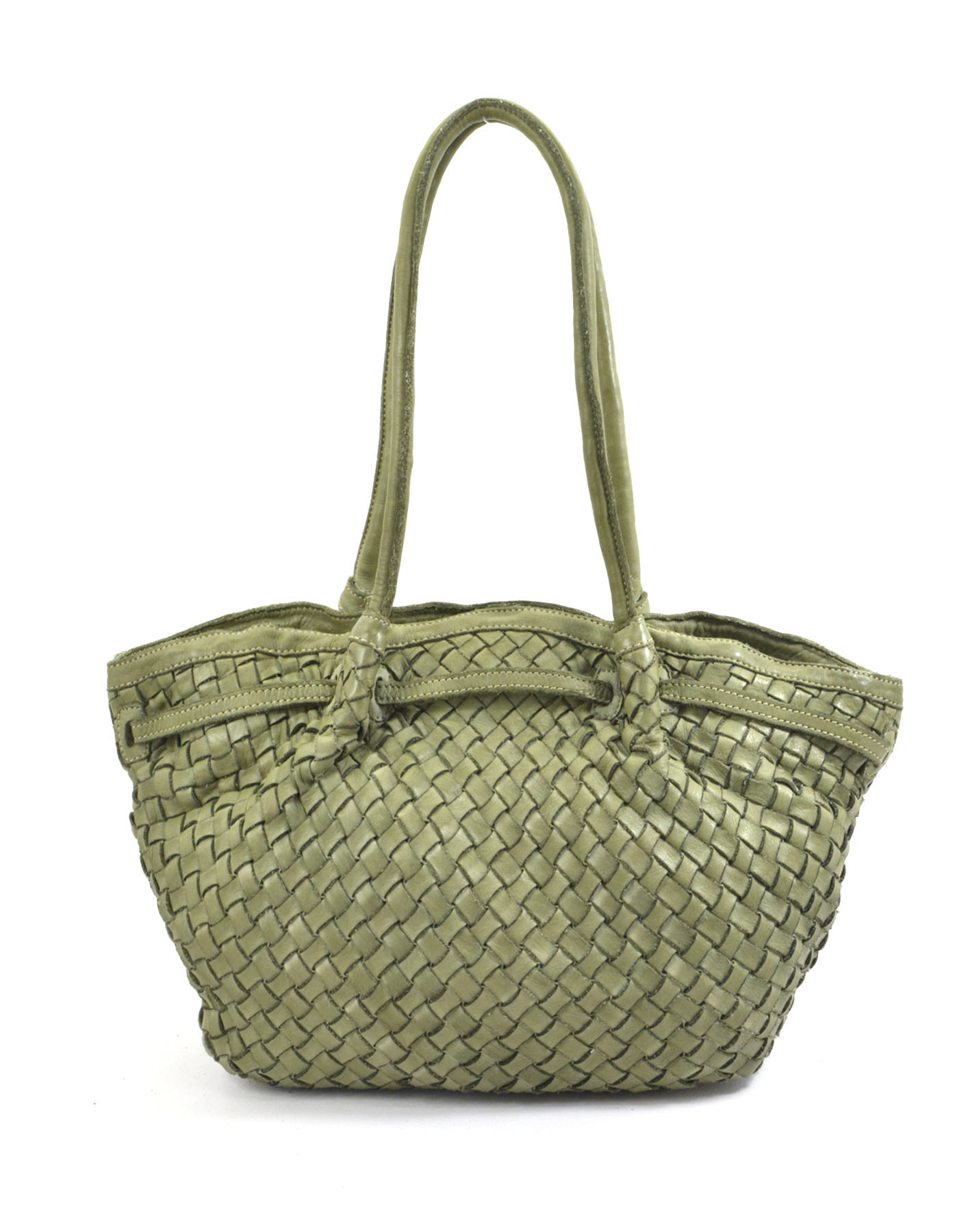 Garment-dyed woven calfskin bag,